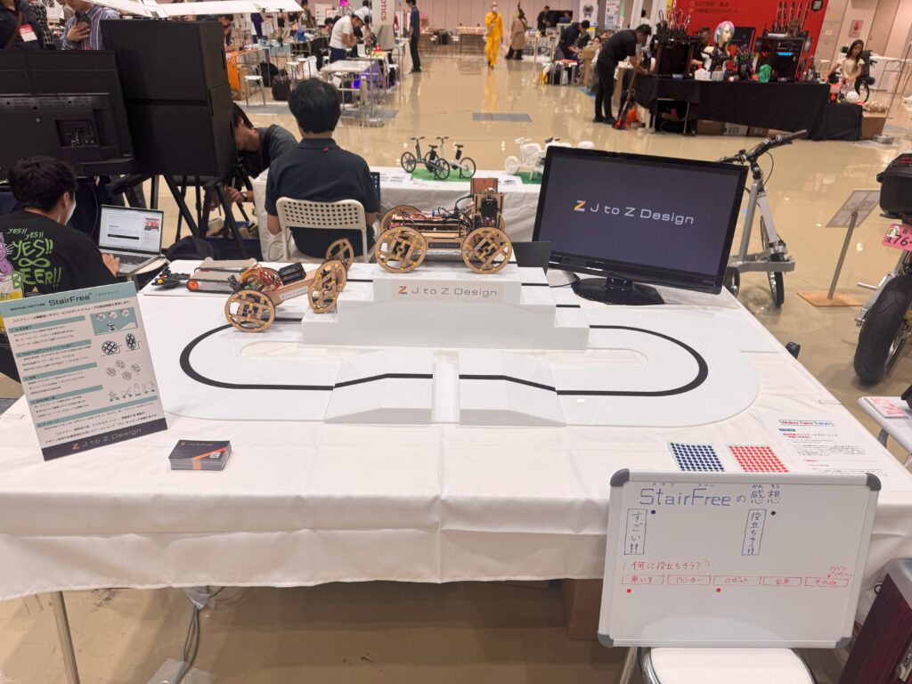 2025年10月4~5日に東京ビッグサイト西4ホールで開催されたMaker Faire Tokyoにて、当社が開発した階段移動モビリティStaireFree®のプロトタイプをデモンストレーションしました。